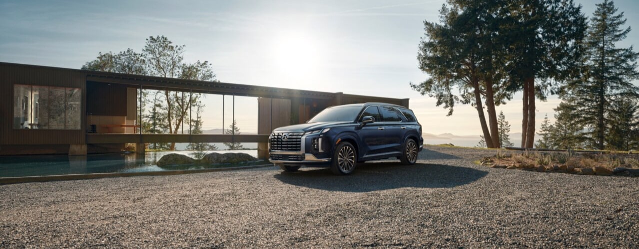 The 2025 Hyundai Palisade has a prominent front grille, sleek lines, and a nicely-sculpted body that creates a visual presence that's both elegant and rugged. Available paint colors in the 2025 Palisade include Abyss Black Pearl, Hyper White, Moonlight Cloud, Sierra Burgundy, Steel Graphite, Robust Emerald and Typhoon Silver. We invite Centerville, OH buyers to visit with one of the professionals in our finance center to get the best available interest rate on a loan for a new 2025 Hyundai Palisade.
