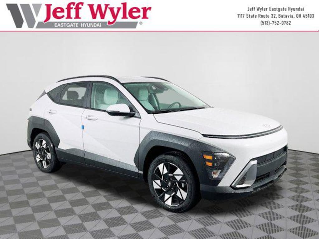 Cyber Gray Metallic 2025 Hyundai Kona SEL 2.0L I4 DOHC 16V FWD CVT 28/35 City/Highway MPG Jeff Wyler Eastgate Auto Mall is honored to offer this great-looking 2025 Hyundai Kona SEL in Cyber Gray Metallic. Well equipped with: Option Group 01, 4-Wheel Disc Brakes, 6 Speakers, ABS brakes, Air Conditioning, Alloy wheels, AM/FM radio: SiriusXM, Apple CarPlay & Android Auto, Auto High-beam Headlights, Automatic temperature control, Brake assist, Bumpers: body-color, Cargo Net, Cargo Tray, Carpeted Floor Mats, Cloth Seat Trim, Cross Rails, Delay-off headlights, Driver door bin, Driver vanity mirror, Dual front impact airbags, Dual front side impact airbags, Electronic Stability Control, Emergency communication system: Bluelink+, Exterior Parking Camera Rear, First Aid Kit, Front anti-roll bar, Front Bucket Seats, Front Center Armrest, Front dual zone A/C, Front reading lights, Front wheel independent suspension, Fully automatic headlights, Heated door mirrors, Illuminated entry, Leather steering wheel, Low tire pressure warning, Occupant sensing airbag, Outside temperature display, Overhead airbag, Panic alarm, Passenger door bin, Passenger vanity mirror, Power door mirrors, Power driver seat, Power steering, Power windows, Radio: AM/FM/HD Radio/SiriusXM Audio System, Rear seat center armrest, Rear window defroster, Rear window wiper, Remote keyless entry, Security system, Speed control, Speed-sensing steering, Split folding rear seat, Spoiler, Steering wheel mounted audio controls, Tachometer, Telescoping steering wheel, Tilt steering wheel, Traction control, Trip computer, Turn signal indicator mirrors, Variably intermittent wipers, and Wheels: 18" x 7.0J Glossy Black Alloy. 28/35 City/Highway MPG