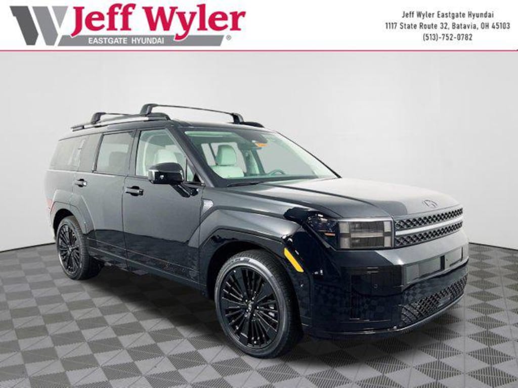 Phantom Black 2025 Hyundai Santa Fe Hybrid Calligraphy I4 AWD 6-Speed Automatic with Shiftronic 35/34 City/Highway MPG Jeff Wyler Eastgate Auto Mall is excited to offer this terrific 2025 Hyundai Santa Fe Hybrid Calligraphy in Phantom Black. Well equipped with: Option Group 01, 12 Speakers, 3rd row seats: bench, 4-Wheel Disc Brakes, ABS brakes, Air Conditioning, Alloy wheels, AM/FM radio: SiriusXM, Apple CarPlay & Android Auto, Auto High-beam Headlights, Auto-dimming Rear-View mirror, Automatic temperature control, Brake assist, Bumpers: body-color, Cargo Blocks, Cargo Organizer, Cargo Tray, Carpeted Floor Mats, Cross Rails, Delay-off headlights, Driver door bin, Driver vanity mirror, Dual front impact airbags, Dual front side impact airbags, Electronic Stability Control, Emergency communication system, Exterior Parking Camera Rear, First Aid Kit, Four wheel independent suspension, Front anti-roll bar, Front Bucket Seats, Front Center Armrest, Front dual zone A/C, Front reading lights, Fully automatic headlights, Garage door transmitter: HomeLink, Heads-Up Display, Heated & Ventilated Front Bucket Seats, Heated door mirrors, Heated front seats, Heated rear seats, Heated steering wheel, Illuminated entry, Knee airbag, Leather steering wheel, Low tire pressure warning, Memory seat, Navigation System, Occupant sensing airbag, Outside temperature display, Overhead airbag, Overhead console, Panic alarm, Passenger door bin, Passenger vanity mirror, Power door mirrors, Power driver seat, Power Liftgate, Power moonroof, Power passenger seat, Power steering, Power windows, Premium Nappa Leather Seat Trim, Radio: AM/FM/HD Bose Premium Audio System, Rain sensing wipers, Rear anti-roll bar, Rear side impact airbag, Rear window defroster, Rear window wiper, Remote keyless entry, Security system, Speed control, Speed-sensing steering, Split folding rear seat, Spoiler, Steering wheel mounted audio controls, Tachometer, Telescoping steering wheel, Tilt steering wheel, Traction control, Trip computer, Turn signal indicator mirrors, Variably intermittent wipers, Ventilated front seats, and Wheels: 20" x 8.5J Unique Dark Finish Alloy. 35/34 City/Highway MPG