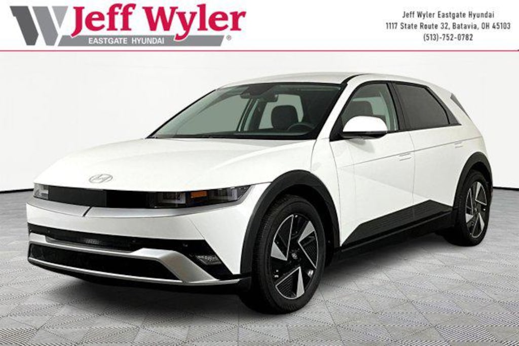 Atlas White 2026 Hyundai IONIQ 5 SEL Electric Motor AWD 1-Speed Automatic 110/87 City/Highway MPG Jeff Wyler Eastgate Auto Mall is excited to offer this charming 2026 Hyundai IONIQ 5 SEL in Atlas White. Well equipped with: Option Group 01, 4-Wheel Disc Brakes, 6 Speakers, ABS brakes, Air Conditioning, All Season Fitted Liners, Alloy wheels, AM/FM radio: SiriusXM, Apple CarPlay & Android Auto, Auto High-beam Headlights, Auto-dimming Rear-View mirror, Automatic temperature control, Bodyside moldings, Brake assist, Bumpers: body-color, Cargo Net, Carpeted Floor Mats, Delay-off headlights, Driver door bin, Driver vanity mirror, Dual front impact airbags, Dual front side impact airbags, Electronic Stability Control, Emergency communication system: None, First Aid Kit, Four wheel independent suspension, Front anti-roll bar, Front Bucket Seats, Front Center Armrest w/Storage, Front dual zone A/C, Front reading lights, Fully automatic headlights, Garage door transmitter: HomeLink, H-Tex Artificial Leather Seating Surfaces, harman/kardon® Speakers, Heated door mirrors, Heated Front Bucket Seats, Heated front seats, Illuminated entry, Low tire pressure warning, Navigation System, Occupant sensing airbag, Outside temperature display, Overhead airbag, Overhead console, Panic alarm, Passenger door bin, Passenger vanity mirror, Power door mirrors, Power driver seat, Power Liftgate, Power passenger seat, Power steering, Power windows, Radio: AM/FM/SiriusXM/HD Audio System, Rear anti-roll bar, Rear reading lights, Rear seat center armrest, Rear side impact airbag, Rear window defroster, Rear window wiper, Remote keyless entry, Security system, Severe Weather Kit, Speed control, Speed-sensing steering, Split folding rear seat, Spoiler, Steering wheel mounted audio controls, Telescoping steering wheel, Tilt steering wheel, Traction control, Trip computer, Turn signal indicator mirrors, Variably intermittent wipers, and Wheels: 19" x 7.5J Alloy. 110/87 City/Highway MPG