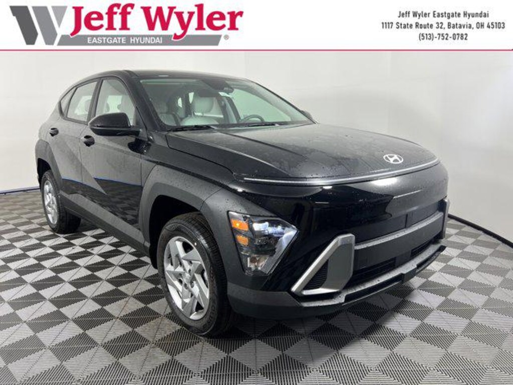 Abyss Black Pearl 2026 Hyundai Kona SE 2.0L I4 DOHC 16V AWD CVT 27/29 City/Highway MPG Jeff Wyler Eastgate Auto Mall is honored to offer this fantastic-looking 2026 Hyundai Kona SE in Abyss Black Pearl. Well equipped with: Option Group 01, 4-Wheel Disc Brakes, 6 Speakers, ABS brakes, Air Conditioning, Alloy wheels, AM/FM radio: SiriusXM, Apple CarPlay & Android Auto, Auto High-beam Headlights, Brake assist, Bumpers: body-color, Cargo Net, Carpeted Floor Mats, Cloth Seat Trim, Delay-off headlights, Driver door bin, Driver vanity mirror, Dual front impact airbags, Dual front side impact airbags, Electronic Stability Control, Emergency communication system: None, Exterior Parking Camera Rear, First Aid Kit, Four wheel independent suspension, Front anti-roll bar, Front Bucket Seats, Front Center Armrest, Front reading lights, Fully automatic headlights, Illuminated entry, Low tire pressure warning, Mud Guards, Occupant sensing airbag, Outside temperature display, Overhead airbag, Panic alarm, Passenger door bin, Passenger vanity mirror, Power door mirrors, Power steering, Power windows, Radio: AM/FM/SiriusXM/HD Audio System, Rear anti-roll bar, Rear window defroster, Rear window wiper, Remote keyless entry, Road Assistance Kit, Security system, Speed control, Speed-sensing steering, Split folding rear seat, Spoiler, Steering wheel mounted audio controls, Tachometer, Telescoping steering wheel, Tilt steering wheel, Traction control, Trip computer, Variably intermittent wipers, and Wheels: 17" x 7.0J Steel Gray Alloy. 27/29 City/Highway MPG Price includes: $750 - Sales Event Cash. Exp. 03/31/2026