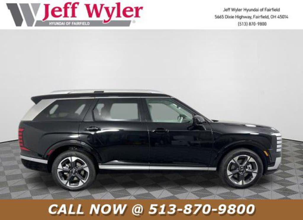 Priced below KBB Fair Purchase Price! 2026 Hyundai Palisade Abyss Black Pearl Limited AWD 8-Speed Automatic V6 Android Auto, Apple CarPlay, CALL NOW FOR YOUR VIP APPOINTMENT 513-870-9800, FULLY SERVICED w/RECORDS, GUARANTEED FINANCING!! NO MATTER YOUR SITUATION WE CAN GET AN APPROVAL!!, THE #1 Volume dealer in the region! Come see why for yourself Today!!, WE PAY MORE FOR YOUR TRADE!!. Jeff Wyler Hyundai of Fairfield is delighted to offer this handsome 2026 Hyundai Palisade Limited in Abyss Black Pearl. Well equipped with: Option Group 01, Android Auto, Apple CarPlay, CALL NOW FOR YOUR VIP APPOINTMENT 513-870-9800, FULLY SERVICED w/RECORDS, GUARANTEED FINANCING!! NO MATTER YOUR SITUATION WE CAN GET AN APPROVAL!!, THE #1 Volume dealer in the region! Come see why for yourself Today!!, WE PAY MORE FOR YOUR TRADE!!, 100W Charging Cable, 14 Speakers, 3rd row seats: split-bench, 4-Wheel Disc Brakes, ABS brakes, Air Conditioning, Alloy wheels, AM/FM radio: SiriusXM, Apple CarPlay & Android Auto, Audio memory, Auto High-beam Headlights, Auto-dimming door mirrors, Auto-dimming Rear-View mirror, Auto-leveling suspension, Automatic temperature control, Brake assist, Bumpers: body-color, Cargo Cover, Cargo Tray, Carpeted Floor Mats, Compass, Delay-off headlights, Driver door bin, Driver vanity mirror, Dual front impact airbags, Dual front side impact airbags, Electronic Stability Control, Emergency communication system: None, Exterior Parking Camera Rear, First Aid Kit, Four wheel independent suspension, Front anti-roll bar, Front Bucket Seats, Front Center Armrest, Front dual zone A/C, Front reading lights, Fully automatic headlights, Garage door transmitter: HomeLink, Genuine wood console insert, Genuine wood dashboard insert, Heated and Ventilated Front Bucket Seats, Heated door mirrors, Heated front seats, Heated rear seats, Heated steering wheel, HVAC memory, Illuminated entry, Knee airbag, Leather Seat Trim, Leather steering wheel, Low tire pressure warning, Memory seat, Navigation System, Occupant sensing airbag, Outside temperature display, Overhead airbag, Overhead console, Panic alarm, Passenger door bin, Passenger vanity mirror, Power door mirrors, Power driver seat, Power Liftgate, Power moonroof, Power passenger seat, Power steering, Power windows, Radio data system, Radio: Infotainment Navigation System, Rear air conditioning, Rear anti-roll bar, Rear audio controls, Rear reading lights, Rear side impact airbag, Rear window defroster, Rear window wiper, Reclining 3rd row seat, Remote keyless entry, Security system, Speed control, Split folding rear seat, Spoiler, Steering wheel mounted audio controls, Tachometer, Telescoping steering wheel, Tilt steering wheel, Traction control, Trip computer, Turn signal indicator mirrors, Variably intermittent wipers, Ventilated front seats, Ventilated rear seats, and Wheels: 20" x 8.0J Alloy. Price includes: $400 - College Graduate Program. Exp. 04/30/2026 $500 - Military Program. Exp. 04/30/2026