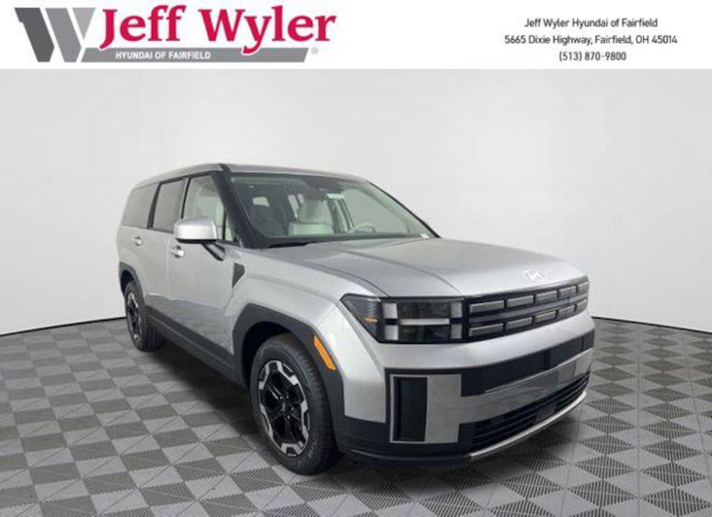 2026 Hyundai Santa Fe Shimmering Silver Pearl SE AWD 8-Speed Automatic with SHIFTRONIC 2.5L I4 AWD, Gray Cloth, Android Auto, Apple CarPlay, CALL NOW FOR YOUR VIP APPOINTMENT 513-870-9800, FULLY SERVICED w/RECORDS, GUARANTEED FINANCING!! NO MATTER YOUR SITUATION WE CAN GET AN APPROVAL!!, THE #1 Volume dealer in the region! Come see why for yourself Today!!, WE PAY MORE FOR YOUR TRADE!!. Jeff Wyler Hyundai of Fairfield is honored to offer this gorgeous-looking 2026 Hyundai Santa Fe SE in Shimmering Silver Pearl. Well equipped with: Option Group 01, AWD, Gray Cloth, Android Auto, Apple CarPlay, CALL NOW FOR YOUR VIP APPOINTMENT 513-870-9800, FULLY SERVICED w/RECORDS, GUARANTEED FINANCING!! NO MATTER YOUR SITUATION WE CAN GET AN APPROVAL!!, THE #1 Volume dealer in the region! Come see why for yourself Today!!, WE PAY MORE FOR YOUR TRADE!!, 18" x 7.5J Alloy Wheels, 3rd row seats: bench, 4-Wheel Disc Brakes, 6 Speakers, ABS brakes, Air Conditioning, All Season Fitted Liners, Alloy wheels, AM/FM radio: SiriusXM, Apple CarPlay & Android Auto, Auto High-beam Headlights, Brake assist, Bumpers: body-color, Cargo Blocks, Cargo Cover/Screen, Cargo Net, Cargo Tray, Carpeted Floor Mats, Delay-off headlights, Driver door bin, Driver vanity mirror, Dual front impact airbags, Dual front side impact airbags, Electronic Stability Control, Emergency communication system, Exterior Parking Camera Rear, First Aid Kit, Four wheel independent suspension, Front anti-roll bar, Front Bucket Seats, Front Center Armrest, Front reading lights, Fully automatic headlights, Heated door mirrors, Illuminated entry, Knee airbag, Leather steering wheel, Low tire pressure warning, Occupant sensing airbag, Outside temperature display, Overhead airbag, Overhead console, Panic alarm, Passenger door bin, Passenger vanity mirror, Power door mirrors, Power Liftgate, Power steering, Power windows, Radio: AM/FM/HD Display Audio, Rear anti-roll bar, Rear seat center armrest, Rear side impact airbag, Rear window defroster, Rear window wiper, Remote keyless entry, Security system, Speed control, Speed-sensing steering, Split folding rear seat, Spoiler, Steering wheel mounted audio controls, Tachometer, Telescoping steering wheel, Tilt steering wheel, Traction control, Trip computer, Variably intermittent wipers, and YES Essentials Stain-Resistant Cloth Seat Trim. Price includes: $3500 - Hyundai HMF Dealer Choice : $3500 discount and 5.49% APR for 24 months. $44.09 per $1000 financed. Available to well qualified buyers who finance through Hyundai Motor Finance. H704. Exp. 12/01/2025 $400 - College Graduate Program. Exp. 12/01/2025 $500 - Military Program. Exp. 12/01/2025