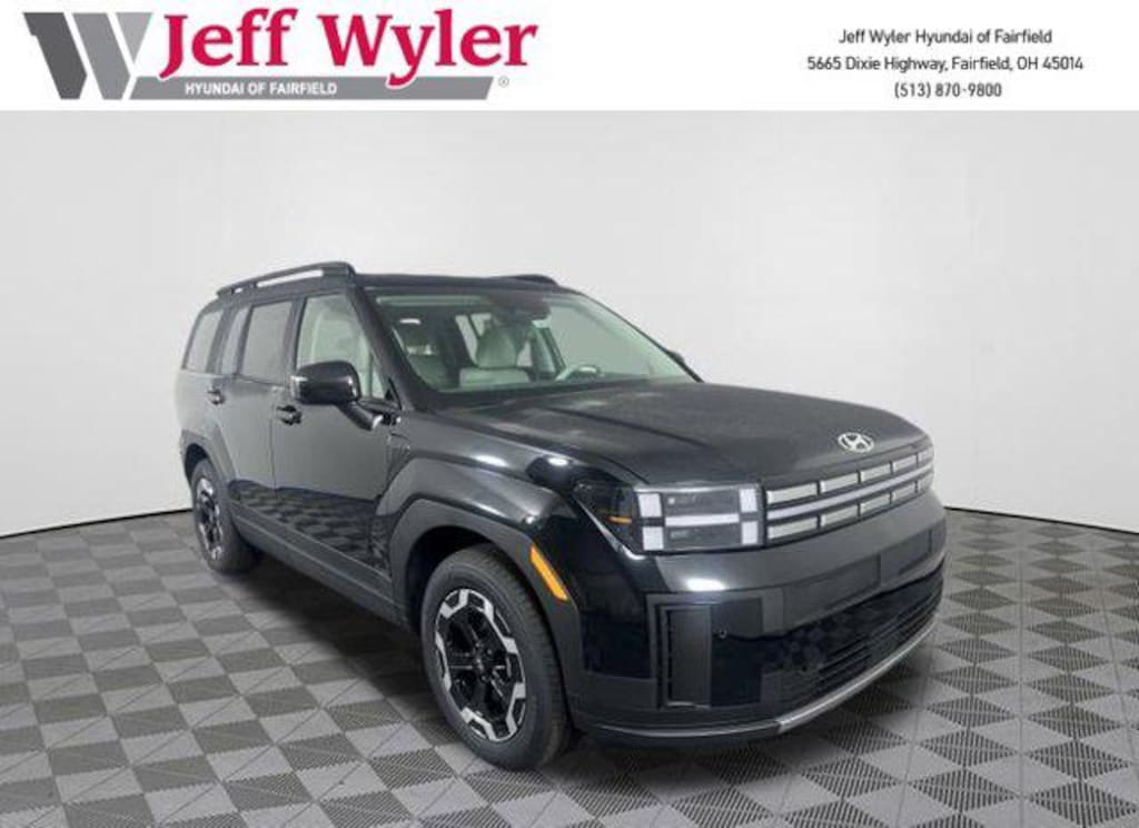 2026 Hyundai Santa Fe Phantom Black SEL AWD 8-Speed Automatic with SHIFTRONIC 2.5L I4 AWD, Gray Premium Synthetic, Android Auto, Apple CarPlay, CALL NOW FOR YOUR VIP APPOINTMENT 513-870-9800, FULLY SERVICED w/RECORDS, GUARANTEED FINANCING!! NO MATTER YOUR SITUATION WE CAN GET AN APPROVAL!!, THE #1 Volume dealer in the region! Come see why for yourself Today!!, WE PAY MORE FOR YOUR TRADE!!. Jeff Wyler Hyundai of Fairfield is pleased to offer this wonderful-looking 2026 Hyundai Santa Fe SEL in Phantom Black. Well equipped with: Option Group 01, AWD, Gray Premium Synthetic, Android Auto, Apple CarPlay, CALL NOW FOR YOUR VIP APPOINTMENT 513-870-9800, FULLY SERVICED w/RECORDS, GUARANTEED FINANCING!! NO MATTER YOUR SITUATION WE CAN GET AN APPROVAL!!, THE #1 Volume dealer in the region! Come see why for yourself Today!!, WE PAY MORE FOR YOUR TRADE!!, 18" x 7.5J Alloy Wheels, 3rd row seats: bench, 4-Wheel Disc Brakes, 6 Speakers, ABS brakes, Air Conditioning, All Season Fitted Liners, Alloy wheels, AM/FM radio: SiriusXM, Apple CarPlay & Android Auto, Auto High-beam Headlights, Automatic temperature control, Brake assist, Bumpers: body-color, Cargo Blocks, Cargo Cover/Screen, Cargo Net, Cargo Tray, Carpeted Floor Mats, Delay-off headlights, Driver door bin, Driver vanity mirror, Dual front impact airbags, Dual front side impact airbags, Electronic Stability Control, Emergency communication system, Exterior Parking Camera Rear, First Aid Kit, Four wheel independent suspension, Front anti-roll bar, Front Bucket Seats, Front Center Armrest, Front dual zone A/C, Front reading lights, Fully automatic headlights, H-Tex Leatherette Seat Trim, Heated door mirrors, Heated Front Bucket Seats, Heated front seats, Illuminated entry, Knee airbag, Leather steering wheel, Low tire pressure warning, Occupant sensing airbag, Outside temperature display, Overhead airbag, Overhead console, Panic alarm, Passenger door bin, Passenger vanity mirror, Power door mirrors, Power driver seat, Power Liftgate, Power steering, Power windows, Radio: AM/FM/HD Display Audio, Rear anti-roll bar, Rear seat center armrest, Rear side impact airbag, Rear window defroster, Rear window wiper, Remote keyless entry, Security system, Severe Weather Kit, Speed control, Speed-sensing steering, Split folding rear seat, Spoiler, Steering wheel mounted audio controls, Tachometer, Telescoping steering wheel, Tilt steering wheel, Traction control, Trip computer, Turn signal indicator mirrors, and Variably intermittent wipers. Price includes: $3500 - Hyundai HMF Dealer Choice : $3500 discount and 5.49% APR for 24 months. $44.09 per $1000 financed. Available to well qualified buyers who finance through Hyundai Motor Finance. H704. Exp. 12/01/2025 $400 - College Graduate Program. Exp. 12/01/2025 $500 - Military Program. Exp. 12/01/2025