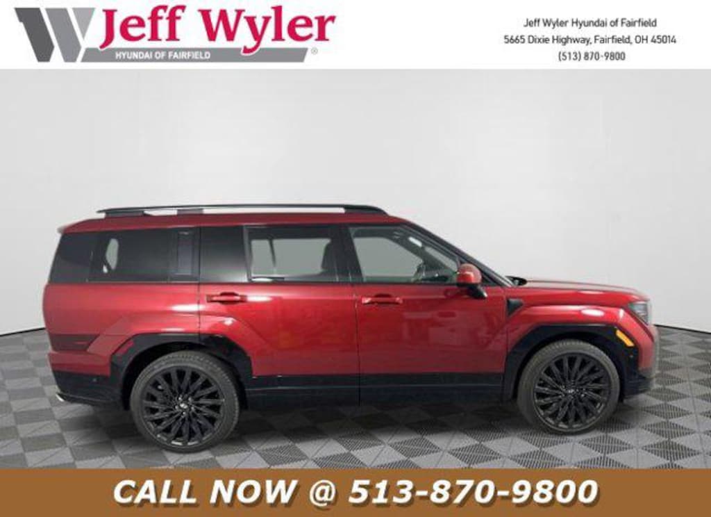 Priced below KBB Fair Purchase Price! 2026 Hyundai Santa Fe Ultimate Red Calligraphy AWD 8-Speed Automatic with SHIFTRONIC 2.5L I4 AWD, Black Leather, Android Auto, Apple CarPlay, CALL NOW FOR YOUR VIP APPOINTMENT 513-870-9800, FULLY SERVICED w/RECORDS, GUARANTEED FINANCING!! NO MATTER YOUR SITUATION WE CAN GET AN APPROVAL!!, THE #1 Volume dealer in the region! Come see why for yourself Today!!, WE PAY MORE FOR YOUR TRADE!!. 20/28 City/Highway MPG Jeff Wyler Hyundai of Fairfield is pumped up to offer this good-looking 2026 Hyundai Santa Fe Calligraphy in Ultimate Red. Well equipped with: Option Group 01, AWD, Black Leather, Android Auto, Apple CarPlay, CALL NOW FOR YOUR VIP APPOINTMENT 513-870-9800, FULLY SERVICED w/RECORDS, GUARANTEED FINANCING!! NO MATTER YOUR SITUATION WE CAN GET AN APPROVAL!!, THE #1 Volume dealer in the region! Come see why for yourself Today!!, WE PAY MORE FOR YOUR TRADE!!, 12 Speakers, 3rd row seats: bench, 4-Wheel Disc Brakes, ABS brakes, Air Conditioning, Alloy wheels, AM/FM radio: SiriusXM, Apple CarPlay & Android Auto, Auto High-beam Headlights, Auto-dimming Rear-View mirror, Automatic temperature control, Brake assist, Bumpers: body-color, Carpeted Floor Mats, Delay-off headlights, Driver door bin, Driver vanity mirror, Dual front impact airbags, Dual front side impact airbags, Electronic Stability Control, Emergency communication system, Exterior Parking Camera Rear, Four wheel independent suspension, Front anti-roll bar, Front Bucket Seats, Front Center Armrest, Front dual zone A/C, Front reading lights, Fully automatic headlights, Garage door transmitter: HomeLink, Heads-Up Display, Heated and Ventilated Front Bucket Seats, Heated door mirrors, Heated front seats, Heated rear seats, Heated steering wheel, Illuminated entry, Knee airbag, Leather steering wheel, Low tire pressure warning, Memory seat, Navigation System, Occupant sensing airbag, Outside temperature display, Overhead airbag, Overhead console, Panic alarm, Passenger door bin, Passenger vanity mirror, Power door mirrors, Power driver seat, Power Liftgate, Power moonroof, Power passenger seat, Power steering, Power windows, Quilted Premium Nappa Leather Seat Trim, Radio: AM/FM/HD Bose Premium Audio System, Rain sensing wipers, Rear anti-roll bar, Rear side impact airbag, Rear window defroster, Rear window wiper, Remote keyless entry, Security system, Speed control, Speed-sensing steering, Split folding rear seat, Spoiler, Steering wheel mounted audio controls, Tachometer, Telescoping steering wheel, Tilt steering wheel, Traction control, Trip computer, Turn signal indicator mirrors, Variably intermittent wipers, Ventilated front seats, and Wheels: 21" x 8.5J Unique Dark Finish Alloy. Price includes: $400 - College Graduate Program. Exp. 04/30/2026 $500 - Military Program. Exp. 04/30/2026