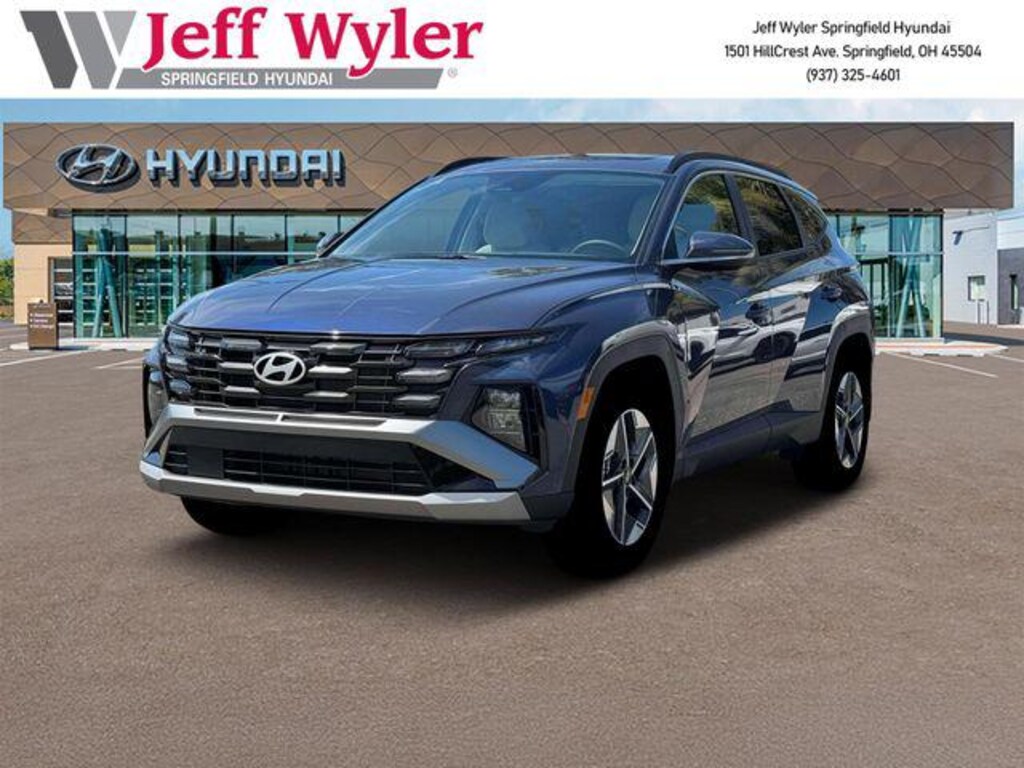 Jeff Wyler Springfield Auto Mall is excited to offer this wonderful-looking 2026 Hyundai Tucson SEL Premium in Atlantis Blue. Well equipped with: Option Group 01, 18" x 7.5J Alloy Wheels, 4-Wheel Disc Brakes, 6 Speakers, ABS brakes, Air Conditioning, Alloy wheels, AM/FM radio: SiriusXM, Apple CarPlay & Android Auto, Auto High-beam Headlights, Auto-dimming Rear-View mirror, Automatic temperature control, Brake assist, Bumpers: body-color, Cargo Blocks, Cargo Cover, Cargo Net, Cargo Organizer, Cargo Tray, Carpeted Floor Mats, Cross Rails, Delay-off headlights, Driver door bin, Driver vanity mirror, Dual front impact airbags, Dual front side impact airbags, Electronic Stability Control, Emergency communication system: None, First Aid Kit, Four wheel independent suspension, Front anti-roll bar, Front Bucket Seats, Front Center Armrest, Front dual zone A/C, Front reading lights, Fully automatic headlights, H-Tex Seat Trim, Heated door mirrors, Heated Front Bucket Seats, Heated front seats, Illuminated Door Sill Plates, Illuminated entry, Leather Shift Knob, Leather steering wheel, Low tire pressure warning, Navigation System, Occupant sensing airbag, Outside temperature display, Overhead airbag, Overhead console, Panic alarm, Passenger door bin, Passenger vanity mirror, Power door mirrors, Power driver seat, Power Liftgate, Power moonroof, Power steering, Power windows, Radio data system, Radio: AM/FM/HD Audio System, Rear anti-roll bar, Rear reading lights, Rear seat center armrest, Rear side impact airbag, Rear window defroster, Rear window wiper, Remote keyless entry, Security system, Speed control, Split folding rear seat, Spoiler, Steering wheel mounted audio controls, Tachometer, Telescoping steering wheel, Tilt steering wheel, Traction control, Trip computer, Turn signal indicator mirrors, and Variably intermittent wipers. 24/30 City/Highway MPG 24/30 City/Highway MPGWyler Family First Package Includes: NanoCure Appearance Protection: Exterior & Interior Chemical Sealant Applied to Protect Against Environmental Hazards (7 Year Warranty Coverage). Pulse- Rear end Collision Avoidance System Theft Deterrent Strategy gives you 5 Years of Coverage against vehicle Theft, Offering up to a $5,000 benefit.