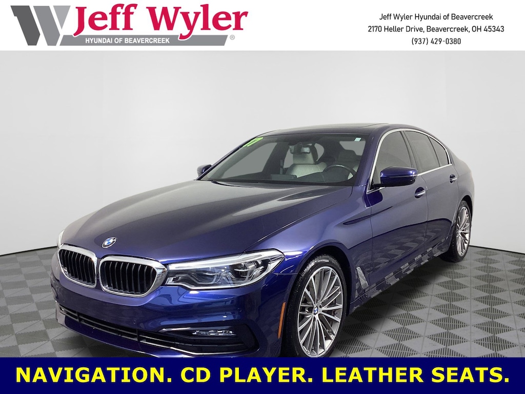 Jeff Wyler Hyundai of Beavercreek is honored to offer this good-looking 2017 BMW 5 Series 540i xDrive in Mediterranean Blue Metallic. Well equipped with: 12 Speakers, 4-Wheel Disc Brakes, ABS brakes, Active Park Distance Control, Air Conditioning, Alloy wheels, AM/FM radio, Apple CarPlay Compatibility, Auto tilt-away steering wheel, Auto-dimming door mirrors, Auto-dimming Rear-View mirror, Automatic High Beams, Automatic temperature control, Brake assist, Bumpers: body-color, CD player, Comfort Access Keyless Entry, Dakota Leather Upholstery, Delay-off headlights, Driver door bin, Driver vanity mirror, Dual front impact airbags, Dual front side impact airbags, Electronic Stability Control, Emergency communication system: BMW Assist eCall, Fineline Cove Wood Trim, Four wheel independent suspension, Front & Rear Heated Seats, Front anti-roll bar, Front Bucket Seats, Front Center Armrest, Front dual zone A/C, Front fog lights, Front reading lights, Fully automatic headlights, Garage door transmitter, Genuine wood console insert, Genuine wood dashboard insert, Genuine wood door panel insert, harman/kardon Surround Sound System, Head-Up Display, Heated door mirrors, Heated Steering Wheel, HiFi Sound System, Icon Adaptive Full LED Headlights, Illuminated entry, Leather Shift Knob, Leather steering wheel, Low tire pressure warning, Lumbar Support, Memory seat, Multi-Contour Seats, Navigation System, Occupant sensing airbag, Outside temperature display, Overhead airbag, Panic alarm, Parking Assistant, Passenger door bin, Passenger vanity mirror, Power door mirrors, Power driver seat, Power Front Seats, Power moonroof, Power passenger seat, Power steering, Power windows, Radio data system, Radio: AM/FM Audio System, Rain sensing wipers, Rear anti-roll bar, Rear reading lights, Rear seat center armrest, Rear window defroster, Rear-View Camera, Remote keyless entry, Security system, Speed control, Speed-sensing steering, Speed-Sensitive Wipers, Split folding rear seat, Sport Seats, Sport steering wheel, Steering wheel memory, Steering wheel mounted audio controls, Tachometer, Telescoping steering wheel, Tilt steering wheel, Traction control, Trip computer, Turn signal indicator mirrors, Variably intermittent wipers, Wheels: 18" x 8" Double-Spoke (Style 634), Wheels: 19" x 8" V-Spoke (Style 635), and WiFi Hotspot.Reviews: * Wide range of new and innovative technology features; larger size didn't result in added weight; powerful engines are still relatively fuel-efficient. Source: EdmundsCome see the excitement at Jeff Wyler Hyundai of Beavercreek! Visit us online at www.jeffwylerhyundaiofbeavercreek.com Proudly Serving: Cincinnati, Dayton, Centeville, Ketttering, Moraine,Beavercreek, Xenia,Oakwood, Trotwood, Vandalia, Kettering, Wright Patterson, Riverside, Engelwood, Miamisburg, Huber Heights, Springboro, Brookville, Fairborn, West Carrollton, Yellow Springs, Bellbrook, Springfield Columbus, Hamilton, West Chester, Monroe, Fairfield. PROUDLY SERVING: CINCINNATI, DAYTON,COLUMBUS, LOUISVILLE, LEXINGTON, INDIANAPOLIS,HAMILTON, FLORENCE, ALEXANDRIA, BEAVERCREEK, SPRINGDALE, WEST CHESTER, MONROE, FAIRFIELD, KENWOOD, NEWPORT AND ALL OF GREATER CINCINNATI OHIO, INDIANA, AND NORTHERN KENTUCKY.