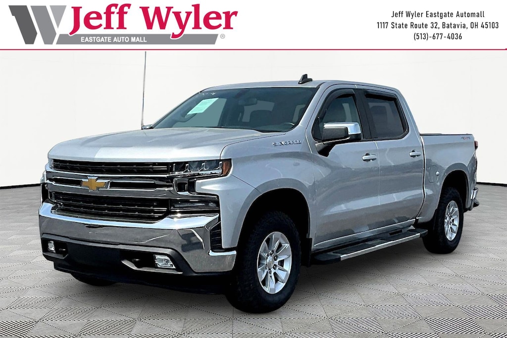 Jeff Wyler Eastgate Auto Mall is very proud to offer this charming 2020 Chevrolet Silverado 1500 LT in Silver Ice Metallic. Well equipped with: All-Star Edition (Heavy-Duty Rear Locking Differential), Convenience Package (10-Way Power Driver Seat w/Lumbar, 12-Volt Rear Auxiliary Power Outlet, 40/20/40 Front Split-Bench Seat, Dual-Zone Automatic Climate Control, Electric Rear-Window Defogger, Electrical Lock Control Steering Column, EZ Lift Power Lock & Release Tailgate, Heated Driver & Front Outboard Passenger Seats, Heated Steering Wheel, Keyless Open & Start, Leather Wrapped Steering Wheel, LED Cargo Area Lighting, Manual Tilt/Telescoping Steering Column, Rear Dual USB Charging-Only Ports, Remote Vehicle Starter System, and Theft Deterrent System (Unauthorized Entry)), Preferred Equipment Group 1LT (2 USB Ports (First Row), 4-Way Manual Driver Seat Adjuster, 4.2" Diagonal Color Display Driver Info Center, 4G LTE Wi-Fi Hot Spot Capable, Bluetooth® For Phone, Chevrolet Connected Access Capable, Chrome Grille, Chrome Mirror Caps, Color-Keyed Carpeting Floor Covering, Compass, Deep-Tinted Glass, Front Frame-Mounted Black Recovery Hooks, Front Rubberized Vinyl Floor Mats, Locking Tailgate, Manual Tilt-Wheel Steering Column, OnStar & Chevrolet Connected Services Capable, Power Door Locks, Power Front Windows w/Driver Express Up/Down, Power Front Windows w/Passenger Express Down, Power Rear Windows w/Express Down, Rear 60/40 Folding Bench Seat (Folds Up), Rear Rubberized-Vinyl Floor Mats, Rear Vision Camera, Remote Keyless Entry, Single-Zone Manual/Semi-Automatic Air Conditioning, Steering Wheel Audio Controls, Steering Wheel Mounted Electronic Cruise Control, and Urethane Steering Wheel), Trailering Package (Hitch Guidance), 170 Amps Alternator, 220 Amps Alternator, 3.23 Rear Axle Ratio, 4-Wheel Disc Brakes, 40/20/40 Front Split Bench Seat, 6 Speakers, 6" Rectangular Chromed Tubular Assist Steps (LPO), ABS brakes, Air Conditioning, Alloy wheels, Apple CarPlay/Android Auto, Auxiliary External Transmission Oil Cooler, Brake assist, Bumpers: chrome, Cloth Seat Trim, Delay-off headlights, Driver door bin, Driver vanity mirror, Dual front impact airbags, Dual front side impact airbags, Electronic Stability Control, External Engine Oil Cooler, Front anti-roll bar, Front Center Armrest w/Storage, Front License Plate Kit, Front reading lights, Front wheel independent suspension, Fully automatic headlights, Heated door mirrors, Heavy Duty Suspension, Illuminated entry, Low tire pressure warning, Occupant sensing airbag, Outside temperature display, Overhead airbag, Overhead console, Panic alarm, Passenger door bin, Passenger vanity mirror, Power door mirrors, Power steering, Power windows, Radio data system, Radio: Chevrolet Infotainment 3 System, Rear reading lights, Rear step bumper, Remote keyless entry, Speed control, Speed-sensing steering, Split folding rear seat, Steering wheel mounted audio controls, Tachometer, Tilt steering wheel, Traction control, Trip computer, Variably intermittent wipers, Voltmeter, and Wheels: 17" x 8" Bright Silver Painted Aluminum. CARFAX One-Owner. Ask about available certifications. Used vehicles 10 years of age or newer with less than 100,000 miles are eligible for the Wyler Assurance Program, but eligible vehicles must pass our reconditioning process and multi-point inspection. Provided the vehicle passes inspection, vehicles will be eligible for the 6 month/6,000 mile limited warranty. The 6 month/6,000 mile limited warranty is NOT available on AS-IS vehicles, wholesale vehicles, lease buyback/pass-thru vehicles or un-inspected vehicles. Note that this program can also apply to vehicles where the remaining factory coverage is less than 6 months or 6,000 miles. Please check the Federal Trade Commission (FTC) Buyers guide on the vehicle for full details as to whether or not warranty coverage may apply. Contact Dealer for additional details. The Wyler Assurance 6 month/6,000 Mile limited warranty ends 6