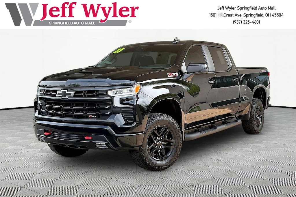 Jeff Wyler Springfield Auto Mall is delighted to offer this gorgeous 2023 Chevrolet Silverado 1500 LT Trail Boss in Black. Well equipped with: Convenience Package (10-Way Power Driver Seat w/Lumbar, 120-Volt Bed Mounted Power Outlet, 120-Volt Instrument Panel Power Outlet, Dual Rear USB Ports (Charge Only), Dual-Zone Automatic Climate Control, Electric Rear-Window Defogger, Heated Driver & Front Outboard Passenger Seats, Heated Steering Wheel, Keyless Open & Start, Remote Vehicle Starter System, Theft Deterrent System (Unauthorized Entry), and Wrapped Steering Wheel), Preferred Equipment Group 2LT (12.3" Multicolor Reconfigurable Digital Display, 6-Speaker Audio System, All-Weather Floor Liner (LPO) (AAK), Auto-Locking Rear Differential, Bluetooth® For Phone, Chevrolet Connected Access Capable, Color-Keyed Carpeting Floor Covering, Compass, Deep-Tinted Glass, Electrical Steering Column Lock, Electronic Cruise Control, EZ Lift Power Lock & Release Tailgate, Front LED Fog Lamps, HD Rear Vision Camera, Heated Power-Adjustable Outside Mirrors, High Gloss Black Mirror Caps, Inside Rear-View Mirror w/Tilt, LED Cargo Area Lighting, OnStar & Chevrolet Connected Services Capable, Performance Red Recovery Hooks, Power Front Windows w/Driver Express Up/Down, Power Front Windows w/Passenger Express Down, Power Rear Windows w/Express Down, Rear 60/40 Folding Bench Seat (Folds Up), SiriusXM w/360L, Standard Tailgate, Steering Wheel Audio Controls, Wi-Fi Hot Spot Capable, and Wireless Phone Projection), Suspension Package (Heavy-Duty Air Filter and Hill Descent Control), Trailering Package (Hitch Guidance), 220 Amp Alternator, 3.42 Rear Axle Ratio, 4-Wheel Disc Brakes, 4" Black Round Assist Steps (LPO), 40/20/40 Front Split-Bench Seat, 6 Speakers, ABS brakes, Air Conditioning, Alloy wheels, AM/FM radio: SiriusXM with 360L, Apple CarPlay/Android Auto, Auto High-beam Headlights, Automatic Emergency Braking, Automatic temperature control, Brake assist, Cloth Seat Trim, Delay-off headlights, Driver door bin, Driver vanity mirror, Dual front impact airbags, Dual front side impact airbags, Electronic Stability Control, Following Distance Indicator, Forward Collision Alert, Front anti-roll bar, Front Center Armrest w/Storage, Front dual zone A/C, Front fog lights, Front Pedestrian Braking, Front reading lights, Front wheel independent suspension, Fully automatic headlights, Heated door mirrors, Heated front seats, Heated steering wheel, Illuminated entry, IntelliBeam Automatic High Beam On/Off, Lane Keep Assist w/Lane Departure Warning, Low tire pressure warning, Not Equipped w/Steering Column Lock, Occupant sensing airbag, Outside temperature display, Overhead airbag, Overhead console, Panic alarm, Passenger door bin, Passenger vanity mirror, Power door mirrors, Power driver seat, Power steering, Power windows, Premium audio system: Chevrolet Infotainment 3 Premium, Radio data system, Radio: Chevrolet Infotainment 3 Premium System, Rear reading lights, Rear step bumper, Rear window defroster, Remote keyless entry, Security system, Speed control, Speed-sensing steering, Split folding rear seat, Steering wheel mounted audio controls, Tachometer, Telescoping steering wheel, Tilt steering wheel, Traction control, Trip computer, Variably intermittent wipers, Voltmeter, and Wheels: 18" x 8.5" Black Painted Aluminum. Ask about available certifications. Used vehicles 10 years of age or newer with less than 100,000 miles are eligible for the Wyler Assurance Program, but eligible vehicles must pass our reconditioning process and multi-point inspection. Provided the vehicle passes inspection, vehicles will be eligible for the 6 month/6,000 mile limited warranty. The 6 month/6,000 mile limited warranty is NOT available on AS-IS vehicles, wholesale vehicles, lease buyback/pass-thru vehicles or un-inspected vehicles. Note that this program can also apply to vehicles where the remaining factory coverage is less than 6 months or 6,000 miles. Please check the Fed