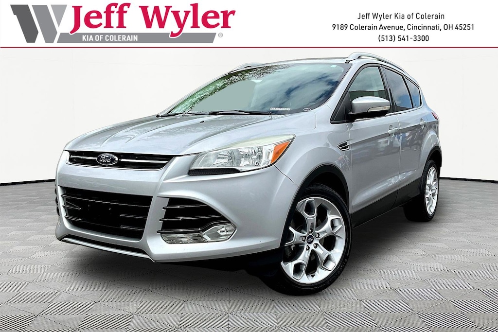Jeff Wyler Kia of Colerain is delighted to offer this superb-looking 2014 Ford Escape Titanium in Ingot Silver Metallic. Equipment Group 400A, 10 Speakers, 3.21 Axle Ratio, 4-Wheel Disc Brakes, ABS brakes, Air Conditioning, Alloy wheels, AM/FM radio: SiriusXM, Auto-dimming Rear-View mirror, Automatic temperature control, Brake assist, Bumpers: body-color, CD player, Compass, Delay-off headlights, Driver door bin, Driver vanity mirror, Dual front impact airbags, Dual front side impact airbags, Electronic Stability Control, Exterior Parking Camera Rear, Four wheel independent suspension, Front anti-roll bar, Front Bucket Seats, Front Center Armrest, Front dual zone A/C, Front fog lights, Front reading lights, Fully automatic headlights, Garage door transmitter, Heated door mirrors, Heated front seats, Heated Leather-Trimmed Buckets w/60/40 Rear Seat, Illuminated entry, Knee airbag, Leather Shift Knob, Low tire pressure warning, Memory seat, Navigation System, Occupant sensing airbag, Outside temperature display, Overhead airbag, Overhead console, Panic alarm, Passenger door bin, Passenger vanity mirror, Power door mirrors, Power driver seat, Power Liftgate, Power steering, Power windows, Radio data system, Radio: AM/FM Single CD/MP3, Rear anti-roll bar, Rear Parking Sensors, Rear reading lights, Rear seat center armrest, Rear window defroster, Rear window wiper, Remote keyless entry, Roof rack: rails only, Security system, Speed control, Speed-sensing steering, Split folding rear seat, Steering wheel mounted audio controls, SYNC w/MyFord Touch & SYNC Services, Tachometer, Telescoping steering wheel, Tilt steering wheel, Traction control, Trip computer, Turn signal indicator mirrors, Variably intermittent wipers, Wheels: 18" Sparkle Nickel Painted Aluminum, and Wheels: 19" Alloy Luster Nickel Our PRE-OWNED vehicles are put through a rigorous 167- POINT QUALITY ASSURANCE INSPECTION along with an average amount of over $1,400.00 SPENT to recondition each vehicle so we can be sure to deliver you the highest quality vehicle like you deserve! ***ONLINE PRICE DOES NOT INCLUDE WYLER FAMILY FIRST PACKAGE***