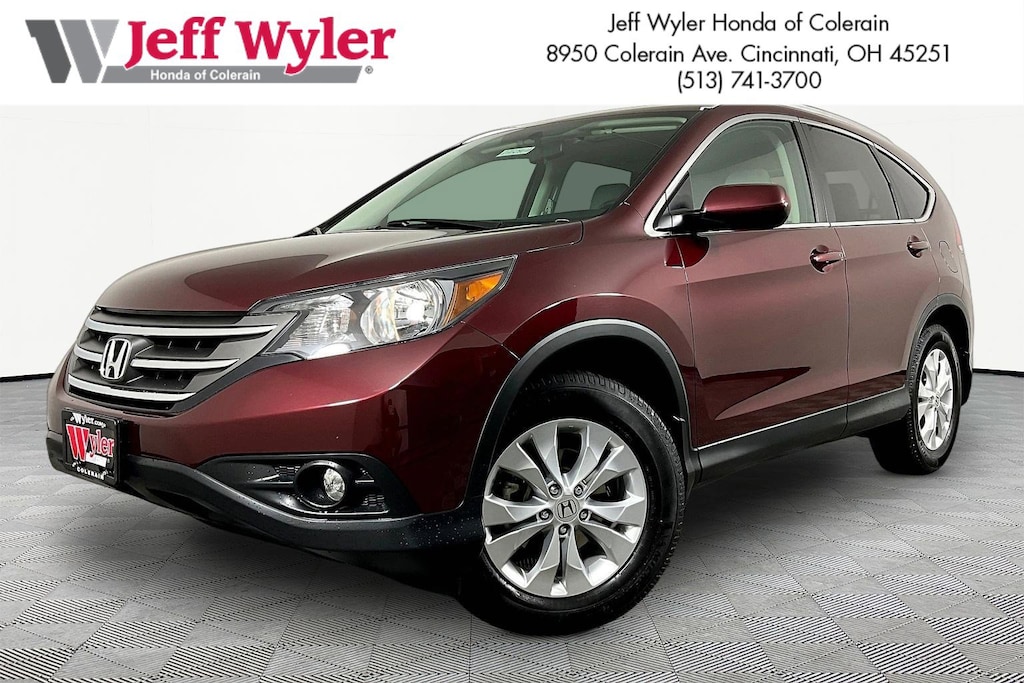 Jeff Wyler Honda of Colerain is honored to offer this wonderful-looking 2014 Honda CR-V EX-L in Basque Red Pearl II. Well equipped with: 17" 10-Spoke Alloy Wheels, 4-Wheel Disc Brakes, 4.44 Axle Ratio, 7 Speakers, ABS brakes, Air Conditioning, Alloy wheels, AM/FM radio: XM, Automatic temperature control, Brake assist, Bumpers: body-color, CD player, Compass, Delay-off headlights, Driver door bin, Driver vanity mirror, Driver's Seat Mounted Armrest, Dual front impact airbags, Dual front side impact airbags, Electronic Stability Control, Exterior Parking Camera Rear, Four wheel independent suspension, Front anti-roll bar, Front Bucket Seats, Front dual zone A/C, Front fog lights, Front reading lights, Heated door mirrors, Heated Front Bucket Seats, Heated front seats, Illuminated entry, Leather Shift Knob, Leather-Trimmed Seats, Low tire pressure warning, Occupant sensing airbag, Outside temperature display, Overhead airbag, Overhead console, Panic alarm, Passenger door bin, Passenger seat mounted armrest, Passenger vanity mirror, Power door mirrors, Power driver seat, Power moonroof, Power steering, Power windows, Radio data system, Radio: AM/FM/CD Audio System w/XM Radio, Rear anti-roll bar, Rear seat center armrest, Rear window defroster, Rear window wiper, Remote keyless entry, Roof rack: rails only, Security system, Speed control, Speed-sensing steering, Speed-Sensitive Wipers, Split folding rear seat, Steering wheel mounted audio controls, Tachometer, Telescoping steering wheel, Tilt steering wheel, Traction control, Trip computer, and Variably intermittent wipers.