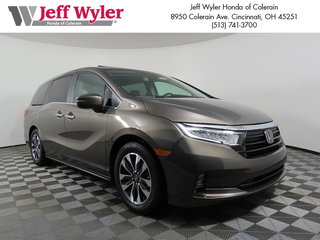 Jeff Wyler Honda of Colerain is pumped up to offer this outstanding-looking 2022 Honda Odyssey EX-L in Pacific Pewter Metallic. Well equipped with: 18" Machine-Finished Alloy Wheels, 3.61 Axle Ratio, 3rd row seats: split-bench, 4-Wheel Disc Brakes, 7 Speakers, A/V remote: CabinControl, ABS brakes, Adaptive Cruise Control: Adaptive Cruise Control (ACC) with Low-Speed Follow, Air Conditioning, Alloy wheels, AM/FM radio: SiriusXM, Anti-whiplash front head restraints, Apple CarPlay/Android Auto, Auto High-beam Headlights, Auto-dimming Rear-View mirror, Automatic temperature control, Blind Spot Information (BSI) System warning, Brake assist, Bumpers: body-color, Delay-off headlights, Driver door bin, Driver vanity mirror, Driver's Seat Mounted Armrest, Dual front impact airbags, Dual front side impact airbags, Electronic Stability Control, Exterior Parking Camera Rear, Forward collision: Collision Mitigation Braking System (CMBS) + FCW mitigation, Four wheel independent suspension, Front anti-roll bar, Front Bucket Seats, Front dual zone A/C, Front fog lights, Front reading lights, Fully automatic headlights, Garage door transmitter: HomeLink, Heated door mirrors, Heated Front Bucket Seats, Heated front seats, Illuminated entry, Knee airbag, Lane departure: Lane Keeping Assist System (LKAS) active, Leather Seat Trim, Leather steering wheel, Low tire pressure warning, Memory seat, Occupant sensing airbag, Outside temperature display, Overhead airbag, Overhead console, Panic alarm, Passenger door bin, Passenger seat mounted armrest, Passenger vanity mirror, Power door mirrors, Power driver seat, Power Liftgate, Power moonroof, Power passenger seat, Power steering, Power windows, Radio data system, Radio: 160-Watt AM/FM/HD/SiriusXM Audio System, Rear air conditioning, Rear anti-roll bar, Rear reading lights, Rear seat center armrest, Rear window defroster, Rear window wiper, Reclining 3rd row seat, Remote keyless entry, Security system, Speed control, Speed-sensing steering, Speed-Sensitive Wipers, Split folding rear seat, Spoiler, Steering wheel mounted audio controls, Tachometer, Telescoping steering wheel, Tilt steering wheel, Traction control, Trip computer, Turn signal indicator mirrors, and Variably intermittent wipers.