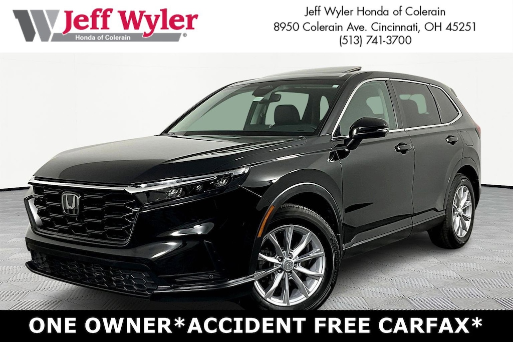 Jeff Wyler Honda of Colerain is excited to offer this beautiful 2025 Honda CR-V EX-L in Crystal Black Pearl. Well equipped with: 4-Wheel Disc Brakes, 8 Speakers, ABS brakes, Adaptive Cruise Control: Adaptive Cruise Control (ACC) with Low-Speed Follow, Air Conditioning, Alloy wheels, AM/FM radio: SiriusXM, Auto High-beam Headlights, Auto-dimming Rear-View mirror, Automatic temperature control, Blind Spot Information (BSI) System warning, Brake assist, Bumpers: body-color, Compass, Delay-off headlights, Driver door bin, Driver vanity mirror, Dual front impact airbags, Dual front side impact airbags, Electronic Stability Control, Exterior Parking Camera Rear, Four wheel independent suspension, Front anti-roll bar, Front Bucket Seats, Front Center Armrest, Front dual zone A/C, Front reading lights, Fully automatic headlights, Heated door mirrors, Heated Front Bucket Seats, Heated front seats, Illuminated entry, Knee airbag, Leather Seat Trim, Leather Shift Knob, Leather steering wheel, Low tire pressure warning, Memory seat, Occupant sensing airbag, Outside temperature display, Overhead airbag, Overhead console, Panic alarm, Passenger door bin, Passenger vanity mirror, Power door mirrors, Power driver seat, Power Liftgate, Power moonroof, Power passenger seat, Power steering, Power windows, Radio data system, Radio: 320-Watt AM/FM/HD/SiriusXM Audio System, Rear anti-roll bar, Rear reading lights, Rear seat center armrest, Rear side impact airbag, Rear window defroster, Rear window wiper, Remote keyless entry, Security system, Speed control, Speed-sensing steering, Speed-Sensitive Wipers, Split folding rear seat, Spoiler, Steering wheel mounted audio controls, Tachometer, Telescoping steering wheel, Tilt steering wheel, Traction control, Trip computer, Turn signal indicator mirrors, Variably intermittent wipers, and Wheels: 18" Sparkle Silver Alloy Metallic.