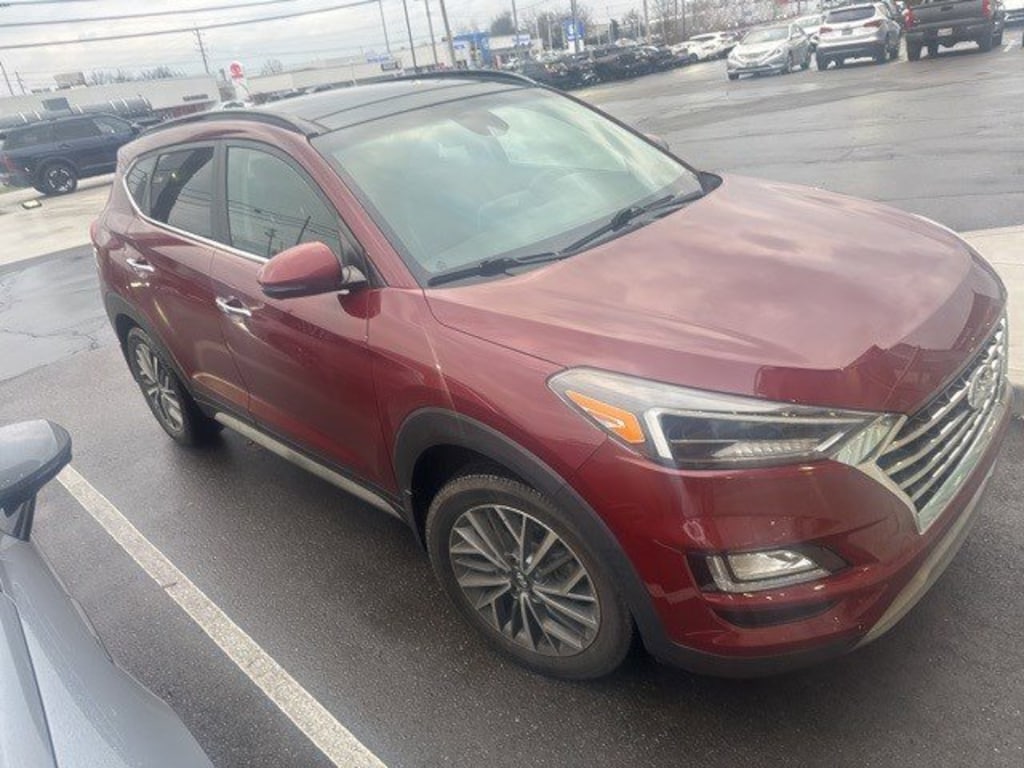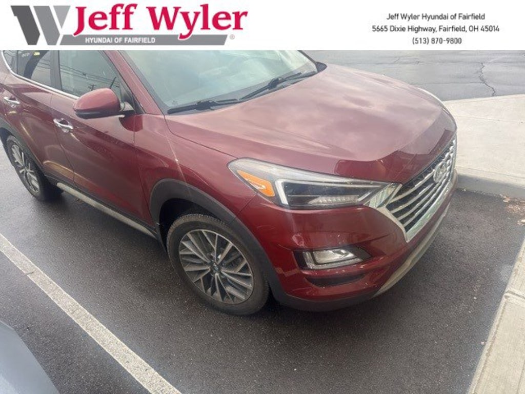 Clean CARFAX. Jeff Wyler Hyundai of Fairfield is excited to offer this handsome 2020 Hyundai Tucson Ultimate in Gemstone Red. Well equipped with: Option Group 01, AWD, Android Auto, Apple CarPlay, CALL NOW FOR YOUR VIP APPOINTMENT 513-870-9800, FULLY SERVICED w/RECORDS, GUARANTEED FINANCING!! NO MATTER YOUR SITUATION WE CAN GET AN APPROVAL!!, THE #1 Volume dealer in the region! Come see why for yourself Today!!, WE PAY MORE FOR YOUR TRADE!!, 18" x 7.0J Alloy Wheels, 4-Wheel Disc Brakes, 8 Speakers, ABS brakes, Air Conditioning, Alloy wheels, AM/FM radio: SiriusXM, Apple CarPlay & Android Auto, Auto High-beam Headlights, Auto-dimming Rear-View mirror, Automatic temperature control, Axle Ratio: 3.195, Brake assist, Bumpers: body-color, Cargo Cover, Cargo Net, Carpeted Floor Mats, Delay-off headlights, Driver door bin, Driver vanity mirror, Dual front impact airbags, Dual front side impact airbags, Electronic Stability Control, Emergency communication system, Exterior Parking Camera Rear, Four wheel independent suspension, Front anti-roll bar, Front Bucket Seats, Front Center Armrest, Front dual zone A/C, Front fog lights, Front reading lights, Fully automatic headlights, Garage door transmitter: HomeLink, Heated & Ventilated Front Bucket Seats, Heated door mirrors, Heated front seats, Heated rear seats, Heated steering wheel, Illuminated entry, Leather Seat Trim, Leather Shift Knob, Low tire pressure warning, Mudguards, Navigation System, Occupant sensing airbag, Outside temperature display, Overhead airbag, Overhead console, Panic alarm, Passenger door bin, Passenger vanity mirror, Power door mirrors, Power driver seat, Power Liftgate, Power moonroof, Power passenger seat, Power steering, Power windows, Radio: Infinity Audio System w/Navigation, Rain sensing wipers, Rear anti-roll bar, Rear reading lights, Rear seat center armrest, Rear window defroster, Rear window wiper, Remote keyless entry, Roof rack: rails only, Security system, Speed control, Speed-sensing steering, Split folding rear seat, Spoiler, Steering wheel mounted audio controls, Tachometer, Telescoping steering wheel, Tilt steering wheel, Traction control, Trip computer, Turn signal indicator mirrors, Variably intermittent wipers, and Ventilated front seats. TO CHECK ON THE AVAILABILITY OF THIS VEHICLE REACH OUT TO ONE OF OUR TEAM MEMBERS!! ALSO SHOP ONLINE AT https://www.jeffwylerhyundaioffairfield.com/ Proudly Serving: Cincinnati, Dayton, Columbus, Louisville, Lexington, Indianapolis, Hamilton, Florence, Alexandria, Beavercreek, Springdale, West Chester, Monroe, Fairfield, Kenwood, Newport and all of greater Cincinnati Ohio, Indiana, and Northern Kentucky.
