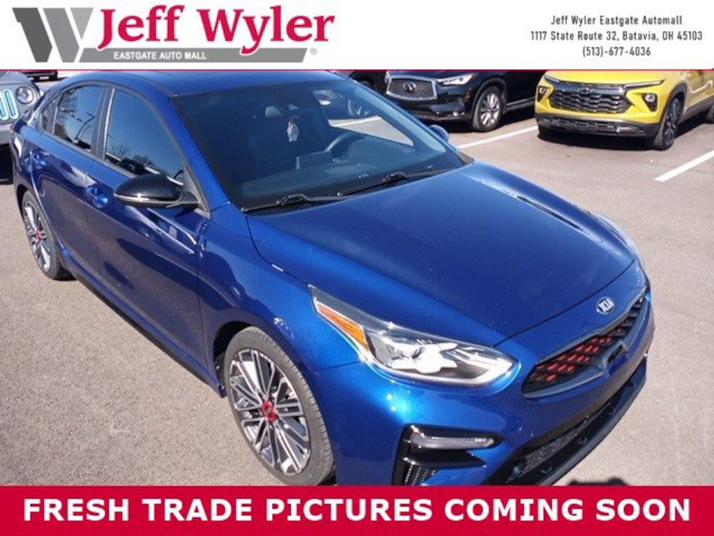 Jeff Wyler Eastgate Auto Mall is delighted to offer this superb-looking 2021 Kia Forte GT in Deep Sea Blue. Well equipped with: GT2 Package (10-Way Power Driver's Seat, 4.2" LCD Meter Cluster, Forward Collision-Avoidance Assist- Ped, Heated & Ventilated Front Seats, Lane Change Assist (LCA), Overhead LED Front & Rear Reading Lamps, Parking Distance Warning-Reverse, Power Sunroof, Radio: AM/FM/MP3 harman/kardon Premium Audio System, Rear Cross-Traffic Collision Warning (RCCW), Smart Cruise Control, SOFINO Leathertte Seat Trim, and Wireless Phone Charger), 4-Wheel Disc Brakes, 6 Speakers, ABS brakes, Air Conditioning, Alloy wheels, AM/FM radio: SiriusXM, Apple CarPlay & Android Auto, Auto High-beam Headlights, Brake assist, Bumpers: body-color, Cloth & Leatherette Seat Trim, Delay-off headlights, Driver door bin, Driver vanity mirror, Dual front impact airbags, Dual front side impact airbags, Electronic Stability Control, Emergency communication system: UVO eServices, Exterior Parking Camera Rear, Four wheel independent suspension, Front anti-roll bar, Front Bucket Seats, Front Center Armrest, Front fog lights, Front reading lights, Front Sport Seats, Fully automatic headlights, Heated door mirrors, Illuminated entry, Lane Departure Warning System, Leather Shift Knob, Leather steering wheel, Low tire pressure warning, Occupant sensing airbag, Outside temperature display, Overhead airbag, Overhead console, Panic alarm, Passenger door bin, Passenger vanity mirror, Power door mirrors, Power steering, Power windows, Radio data system, Radio: AM/FM/MP3 Display Audio System, Rear anti-roll bar, Rear seat center armrest, Rear window defroster, Remote keyless entry, Security system, Speed control, Split folding rear seat, Spoiler, Sport steering wheel, Steering wheel mounted audio controls, Tachometer, Telescoping steering wheel, Tilt steering wheel, Traction control, Trip computer, Turn signal indicator mirrors, Variably intermittent wipers, and Wheels: 18" Machine Finish Alloy. Clean CARFAX. Awards: * JD Power Initial Quality Study (IQS) Ask about available certifications. Used vehicles 10 years of age or newer with less than 100,000 miles are eligible for the Wyler Assurance Program, but eligible vehicles must pass our reconditioning process and multi-point inspection. Provided the vehicle passes inspection, vehicles will be eligible for the 6 month/6,000 mile limited warranty. The 6 month/6,000 mile limited warranty is NOT available on AS-IS vehicles, wholesale vehicles, lease buyback/pass-thru vehicles or un-inspected vehicles. Note that this program can also apply to vehicles where the remaining factory coverage is less than 6 months or 6,000 miles. Please check the Federal Trade Commission (FTC) Buyers guide on the vehicle for full details as to whether or not warranty coverage may apply. Contact Dealer for additional details. The Wyler Assurance 6 month/6,000 Mile limited warranty ends 6 months from the date of the Retail Purchase Agreement (BUYERS ORDER) or when the vehicle's odometer registers 6,000 additional miles to the mileage listed on the BUYERS ORDER, whichever comes first. Your Deductible - The warranty holder on your contract pays the first $100 of each covered repair.