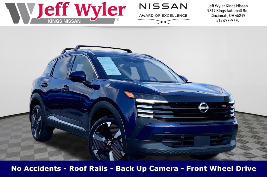 $3,398 off MSRP! Jeff Wyler Kings Nissan is pleased to offer this fantastic-looking 2025 Nissan Kicks SR in Deep Blue Pearl. Well equipped with: 17" Alloy Wheels, 19" Alloy Wheels, 4-Wheel Disc Brakes, 6 Speakers, ABS brakes, Air Conditioning, Alloy wheels, AM/FM radio: Sirius, Auto High-beam Headlights, Automatic temperature control, Brake assist, Bumpers: body-color, Carpeted Floor Mats & Underfloor Protector, Cloth/Leatherette Seat Trim, Crossbars, Delay-off headlights, Driver door bin, Driver vanity mirror, Dual front impact airbags, Dual front side impact airbags, Electronic Stability Control, Front anti-roll bar, Front Bucket Seats, Front Center Armrest, Front reading lights, Front wheel independent suspension, Fully automatic headlights, Illuminated entry, Knee airbag, Leather Shift Knob, Leather steering wheel, Low tire pressure warning, Occupant sensing airbag, Outside temperature display, Overhead airbag, Overhead console, Panic alarm, Passenger door bin, Passenger vanity mirror, Power door mirrors, Power steering, Power windows, Radio data system, Radio: AM/FM Audio System, Rear anti-roll bar, Rear reading lights, Rear seat center armrest, Rear side impact airbag, Rear window defroster, Rear window wiper, Remote keyless entry, Security system, Speed control, Speed-sensing steering, Splash Guards, Split folding rear seat, Spoiler, Sport steering wheel, Steering wheel mounted audio controls, Tachometer, Telescoping steering wheel, Tilt steering wheel, Traction control, Trip computer, Turn signal indicator mirrors, Variably intermittent wipers, and Wireless Apple CarPlay/Wireless Android Auto. 28/35 City/Highway MPG