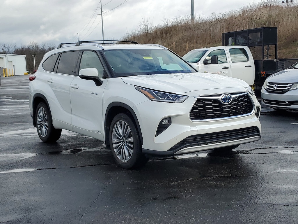Jeff Wyler Florence Buick GMC is pumped up to offer this good-looking 2021 Toyota Highlander Hybrid Platinum in Blizzard Pearl. 11 Speakers, 3rd row seats: split-bench, 4-Wheel Disc Brakes, ABS brakes, Air Conditioning, Alloy wheels, AM/FM radio: SiriusXM, Apple CarPlay/Android Auto, Auto High-beam Headlights, Auto-dimming Rear-View mirror, Automatic temperature control, Axle Ratio TBD, Brake assist, Bumpers: body-color, Delay-off headlights, Driver door bin, Driver vanity mirror, Dual front impact airbags, Dual front side impact airbags, Electronic Rear-View Mirror, Electronic Stability Control, Emergency communication system: Safety Connect with 1-year trial, Four wheel independent suspension, Front anti-roll bar, Front Bucket Seats, Front Center Armrest, Front dual zone A/C, Front fog lights, Front reading lights, Fully automatic headlights, Garage door transmitter: HomeLink, Heads-Up Display, Heated & Ventilated Front Bucket Seats, Heated door mirrors, Heated front seats, Heated rear seats, Heated steering wheel, High Grade LED, Illuminated entry, Knee airbag, Leather Seat Trim, Leather Shift Knob, Low tire pressure warning, Memory seat, Navigation system: Dynamic Navigation (3-year trial), Occupant sensing airbag, Outside temperature display, Overhead airbag, Overhead console, Panic alarm, Panoramic Moonroof, Panoramic View Monitor, Passenger door bin, Passenger vanity mirror, Power door mirrors, Power driver seat, Power Liftgate, Power moonroof, Power passenger seat, Power steering, Power windows, Radio: JBL Premium Audio w/Navigation System, Rain sensing wipers, Rear air conditioning, Rear anti-roll bar, Rear reading lights, Rear window defroster, Rear window wiper, Reclining 3rd row seat, Remote keyless entry, Roof rack: rails only, Security system, Speed control, Speed-sensing steering, Split folding rear seat, Spoiler, Steering wheel mounted audio controls, Telescoping steering wheel, Tilt steering wheel, Traction control, Trip computer, Turn signal indicator mirrors, Variably intermittent wipers, Ventilated front seats, and Wheels: 20 Platinum Alloy Our PRE-OWNED vehicles are put through a rigorous 167- POINT QUALITY ASSURANCE INSPECTION along with an average amount of over $1,400.00 SPENT to recondition each vehicle so we can be sure to deliver you the highest quality vehicle like you deserve! ***ONLINE PRICE DOES NOT INCLUDE WYLER FAMILY FIRST PACKAGE*** Stop by 1154 Burlington Pike Florence KY 41402to see for yourself, or give us a call @ 859-525-8001 to schedule your test drive!