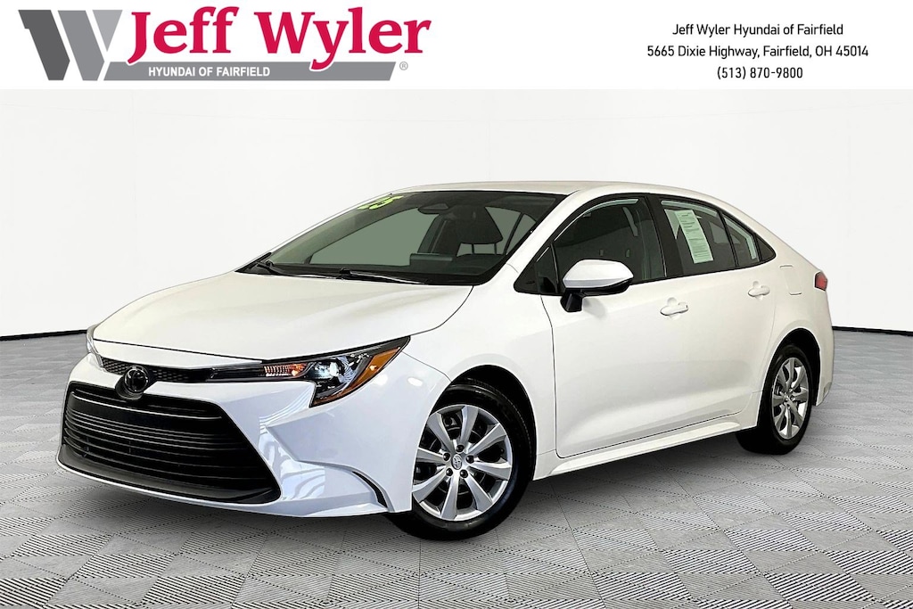 CARFAX One-Owner. Clean CARFAX. Jeff Wyler Hyundai of Fairfield is excited to offer this good-looking 2025 Toyota Corolla LE in Ice Cap. Well equipped with: Android Auto, Apple CarPlay, CALL NOW FOR YOUR VIP APPOINTMENT 513-870-9800, FULLY SERVICED w/RECORDS, GUARANTEED FINANCING!! NO MATTER YOUR SITUATION WE CAN GET AN APPROVAL!!, THE #1 Volume dealer in the region! Come see why for yourself Today!!, WE PAY MORE FOR YOUR TRADE!!, 4-Wheel Disc Brakes, 6 Speakers, ABS brakes, Air Conditioning, AM/FM radio: SiriusXM, Apple CarPlay/Android Auto, Auto High-beam Headlights, Automatic temperature control, Brake assist, Bumpers: body-color, Delay-off headlights, Driver door bin, Driver vanity mirror, Dual front impact airbags, Dual front side impact airbags, Electronic Stability Control, Emergency communication system: Safety Connect (up to 10-year trial subscription), Exterior Parking Camera Rear, Fabric Seat Trim, Front anti-roll bar, Front Bucket Seats, Front Center Armrest, Front reading lights, Front wheel independent suspension, Fully automatic headlights, Illuminated entry, Knee airbag, Low tire pressure warning, Occupant sensing airbag, Outside temperature display, Overhead airbag, Panic alarm, Passenger door bin, Passenger vanity mirror, Power door mirrors, Power steering, Power windows, Radio data system, Radio: 8" Toyota Audio Multimedia, Rear anti-roll bar, Rear seat center armrest, Rear side impact airbag, Rear window defroster, Remote keyless entry, Speed control, Split folding rear seat, Steering wheel mounted audio controls, Tachometer, Telescoping steering wheel, Tilt steering wheel, Traction control, Trip computer, and Wheels: 16" Steel with Covers. TO CHECK ON THE AVAILABILITY OF THIS VEHICLE REACH OUT TO ONE OF OUR TEAM MEMBERS!! ALSO SHOP ONLINE AT https://www.jeffwylerhyundaioffairfield.com/ Proudly Serving: Cincinnati, Dayton, Columbus, Louisville, Lexington, Indianapolis, Hamilton, Florence, Alexandria, Beavercreek, Springdale, West Chester, Monroe, Fairfield, Kenwood, Newport and all of greater Cincinnati Ohio, Indiana, and Northern Kentucky.